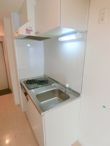 使いやすいシステムキッチンを採用。2口コンロや収納スペースが確保され、自炊派にも満足できる機能性があります。
