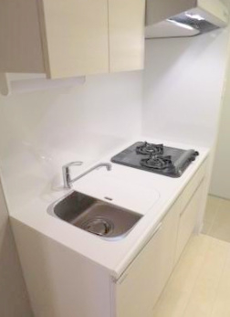 室内のキッチンは清潔感と使いやすさを意識した仕様で、システムキッチンタイプが一般的です。 ガスコンロ設置可能な仕様で、料理の利便性が確保されています。 また、給湯・排水設備の配置にも配慮され、家事動線がスムーズな設計となっています