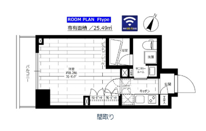 洋室は25.49㎡の専有面積を最大限に活かした機能的なレイアウト。南西向きの窓から明るい日差しが差し込み、一日を通して自然光に包まれた心地よい空間が広がります。白を基調とした内装は清潔感があり、家具の配置もしやすいシンプル設計。ワークスペースを設けても圧迫感を感じにくく、テレワークにも最適です。エアコン完備で四季を通じて快適に過ごせます。遮音性に優れたRC造なので、外部の騒音を気にせず静かな時間を楽しめるのも魅力。日々の疲れを癒やす“自分だけのプライベート空間”として理想的なお部屋です。