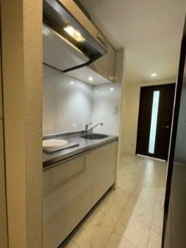 システムキッチンを採用し、コンパクトながら調理がしやすいレイアウト。ガスコンロや収納スペースも充実しており、自炊をされる方にも使い勝手の良い仕様です。