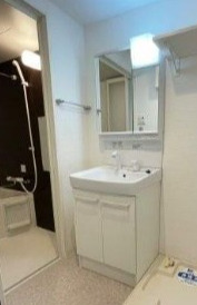 収納付きの独立洗面化粧台が設置され、朝の身支度もスムーズ。シンプルで使いやすいデザインが魅力です。