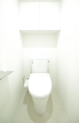 各住戸に専用トイレが設けられており、トイレは“バス・トイレ別”の設計です。また温水洗浄便座付きで、清潔性と快適性を両立。トイレが独立しているため、浴室使用中でも気兼ねなく利用でき、来客時にも安心感があります。これは “セパレートタイプ(バス・トイレ別)” の大きなメリットです。