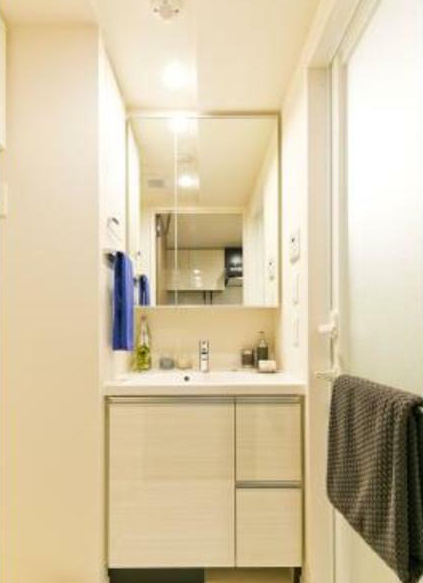 洗面所は独立しており、浴室やトイレとは別に設けられているため、朝の身支度や洗顔・歯磨きの際もプライバシーや使い勝手の面で優れています。洗面化粧台つきで、収納や鏡付きなど、日々の生活がスマートに。脱衣所と浴室の導線も確保されており、使いやすい水まわり環境が整えられています。
