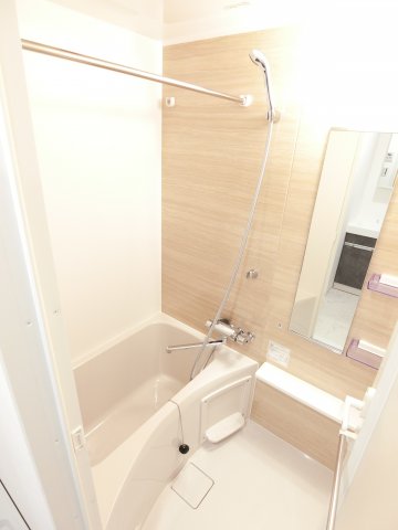 一日の疲れを癒す快適空間。浴室換気乾燥機完備で、雨の日の洗濯物乾燥にも便利です。清潔感のあるタイルと照明が心地よいリラックスタイムを演出します。