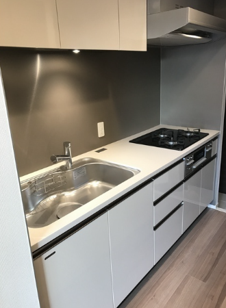 機能性とデザイン性を兼ね備えたシステムキッチンを採用。調理スペースがしっかり確保されており、自炊派の方にも嬉しい仕様です。収納も豊富でキッチン周りがすっきり片付き、毎日の料理が快適になります。
