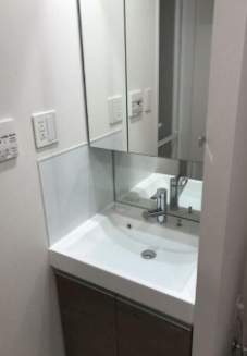 独立洗面台を備えており、朝の身支度や帰宅後の手洗いもスムーズ。洗面ボウル周りには収納スペースがあり、化粧品や洗面用品をすっきり整理できます。バス・トイレと分かれているため、来客時にも使いやすく、清潔感を保ちやすい点も嬉しいポイントです。