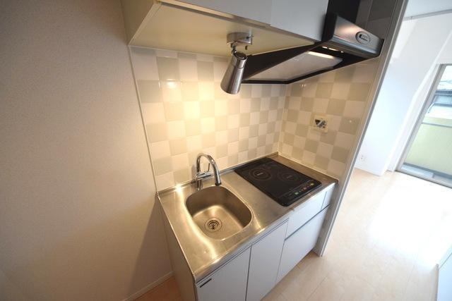 1Kの間取りに合わせて効率的に配置されたシステムキッチンで、ガスコンロまたはIHヒーター対応の2口コンロが備わっていることが多いです。作業スペースやシンク下の収納が確保されているため、日々の調理や食器の整理がしやすい設計になっています。コンパクトながらも収納棚や調理スペースが使いやすく、シンプルな自炊から日常の簡単な料理まで対応可能です。また、キッチンの横には冷蔵庫スペースやラックを置く余裕があり、生活動線がスムーズに保てます。さらに室内洗濯機置き場が近くにあり、家事動線全体の利便性も高く設計されています。