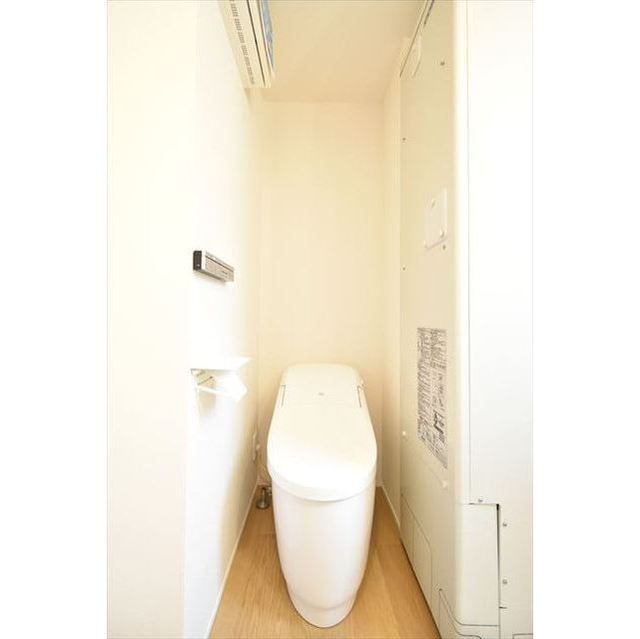 トイレは独立した空間として設けられており、清潔感のある仕様です。温水洗浄便座も標準装備され、快適な日常使いができます。また、プライバシーが確保されているため、ご友人や来客時でも気兼ねなく使える設計です。