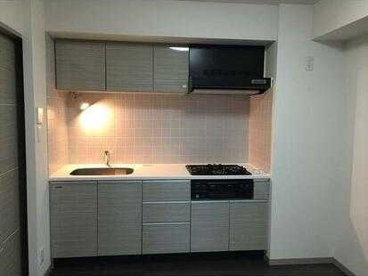 システムキッチン仕様で、使い勝手の良さを重視した設計。ガスコンロは2口以上設置可能で、グリル付きのタイプもあり、日々の料理がスムーズに行える設備です。収納スペースや作業スペースも確保されており、調理〜片付けまで効率的に行えます。効率的な動線により、単身者はもちろん二人暮らしでも快適に使えるキッチンです。