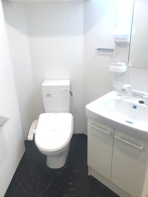 バス・トイレ別設計で、独立した空間となっているため、プライバシー性が高いのが特徴です。さらに、温水洗浄便座が備えられており、清潔で快適なトイレ空間を実現しています。脱衣所からのアクセスもスムーズで、日常の使い勝手が良い設備設計です。