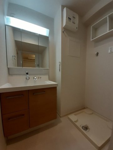 独立した洗面所(脱衣所) として設計されており、他の水回りと分かれて使えるのが嬉しいポイントです。洗面化粧台は シャワー付きの洗面台 で、顔を洗うだけでなく朝の身支度もスムーズ。化粧品や洗面用品の収納も確保でき、生活導線に配慮されたレイアウトになっています。